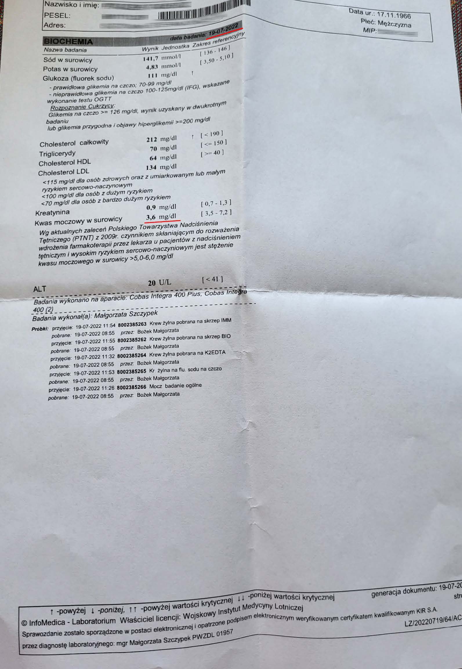 Gout in a 56-year-old man, with a dramatic drop in uric acid. The pre-therapy value was 9.0 mg/dl, accompanied by cyclical gout attacks. However, the history of the disease began much earlier than the first examination. In 2022, therapy with the preparation began, and after 3 months of use, a decrease in uric acid was noted to 7.9 mg/dl. After another 6 months of use, the uric acid level decreased to 3.6 mg/dl. As the uric acid level decreased to the desired level, gout attacks ceased, and the effect is sustained. A 60% reduction in uric acid demonstrates a reversal of urate accumulation. The preparation increases mitochondrial ATP in kidney and liver cells, improving purine metabolism and filtration, which removes urate crystals and reverses arthritis. Standard treatment with allopurinol and colchicine requires lifelong treatment with side effects that affect daily functioning, while in the case of this preparation there are no side effects and a relatively quick response of the body.