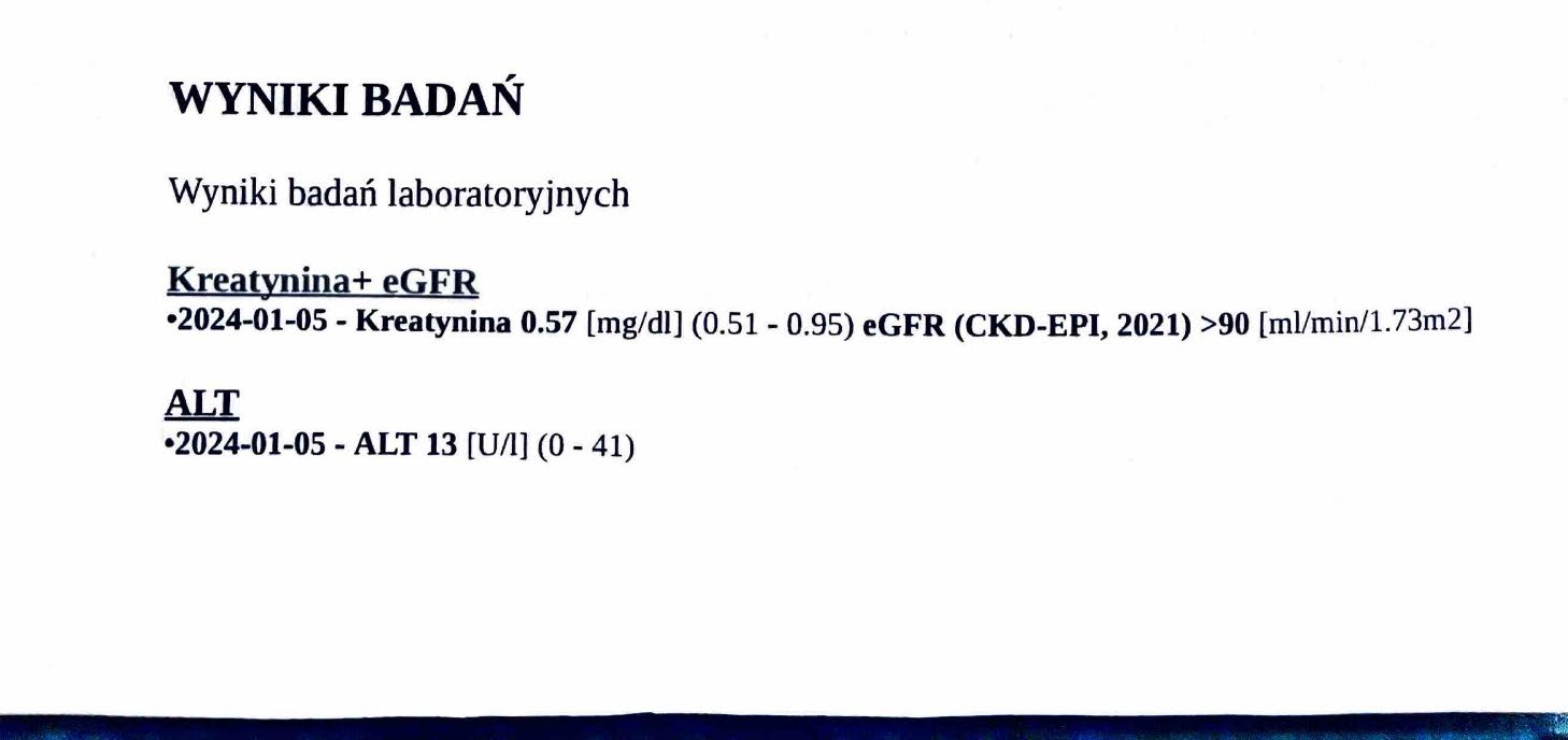 Gout in a 56-year-old man, with a dramatic drop in uric acid. The pre-therapy value was 9.0 mg/dl, accompanied by cyclical gout attacks. However, the history of the disease began much earlier than the first examination. In 2022, therapy with the preparation began, and after 3 months of use, a decrease in uric acid was noted to 7.9 mg/dl. After another 6 months of use, the uric acid level decreased to 3.6 mg/dl. As the uric acid level decreased to the desired level, gout attacks ceased, and the effect is sustained. A 60% reduction in uric acid demonstrates a reversal of urate accumulation. The preparation increases mitochondrial ATP in kidney and liver cells, improving purine metabolism and filtration, which removes urate crystals and reverses arthritis. Standard treatment with allopurinol and colchicine requires lifelong treatment with side effects that affect daily functioning, while in the case of this preparation there are no side effects and a relatively quick response of the body.